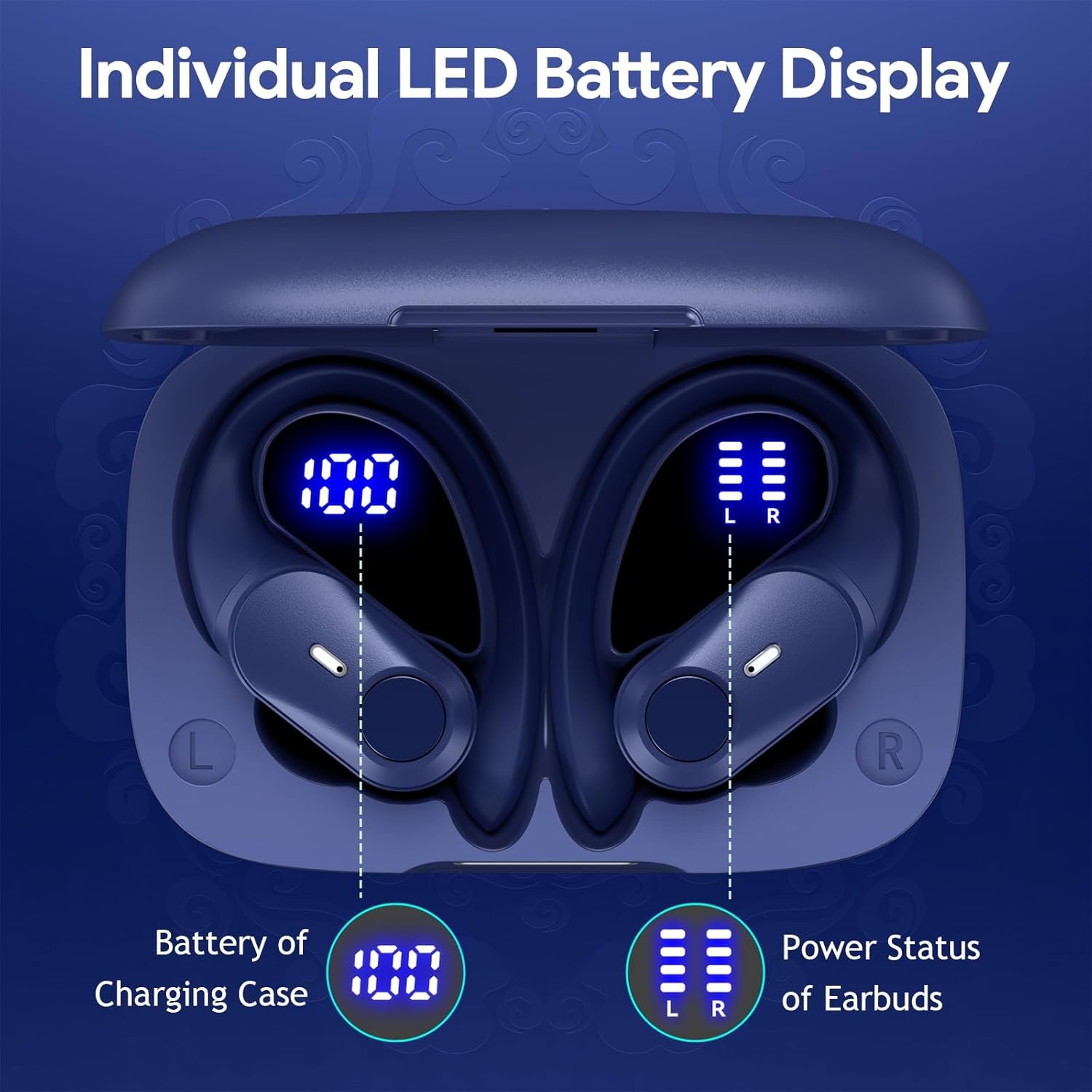 Enjoy up to 80 hours of total playtime with the compact charging case, quick USB‑C and wireless charging, and a fast 15-minute boost for one hour of playback. The ergonomic over-ear hooks provide a secure, comfortable fit for workouts, travel, or daily use.