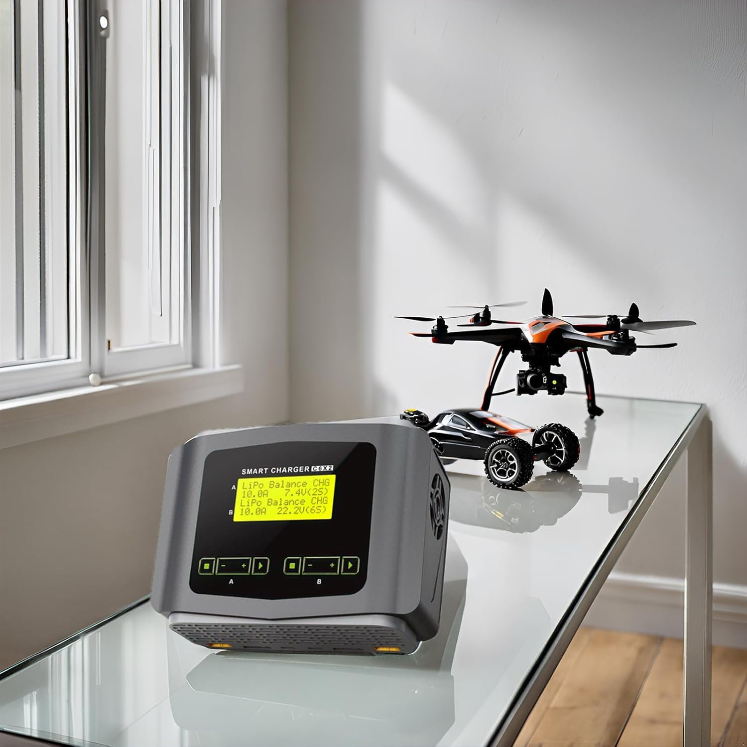 Charge, balance, and maintain your RC batteries with ease using this dual-channel battery charger and discharger. Compatible with LiPo, LiHV, Li-ion, LiFe, NiMH, NiCd, and Pb batteries, it features a large easy-to-read screen, memory function, and multiple charging modes for safe and efficient performance. Compact and portable, it’s the perfect tool to keep your batteries ready—upgrade your charging setup today!