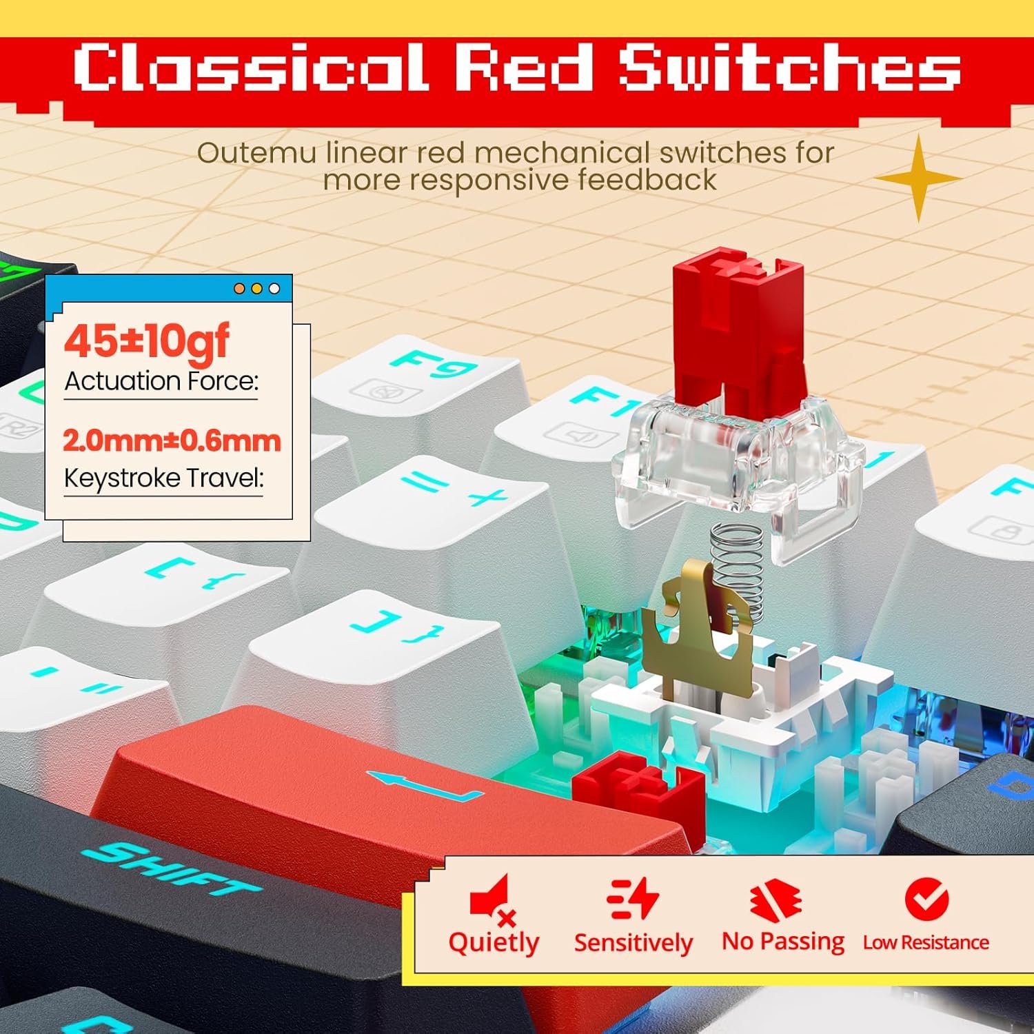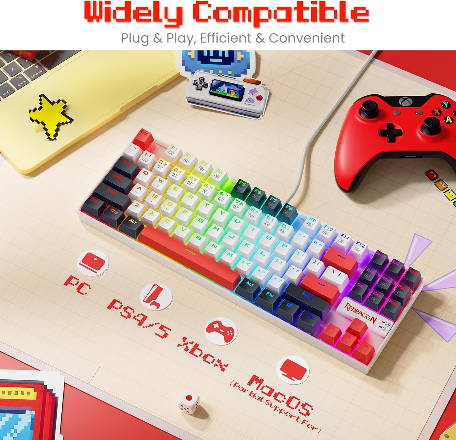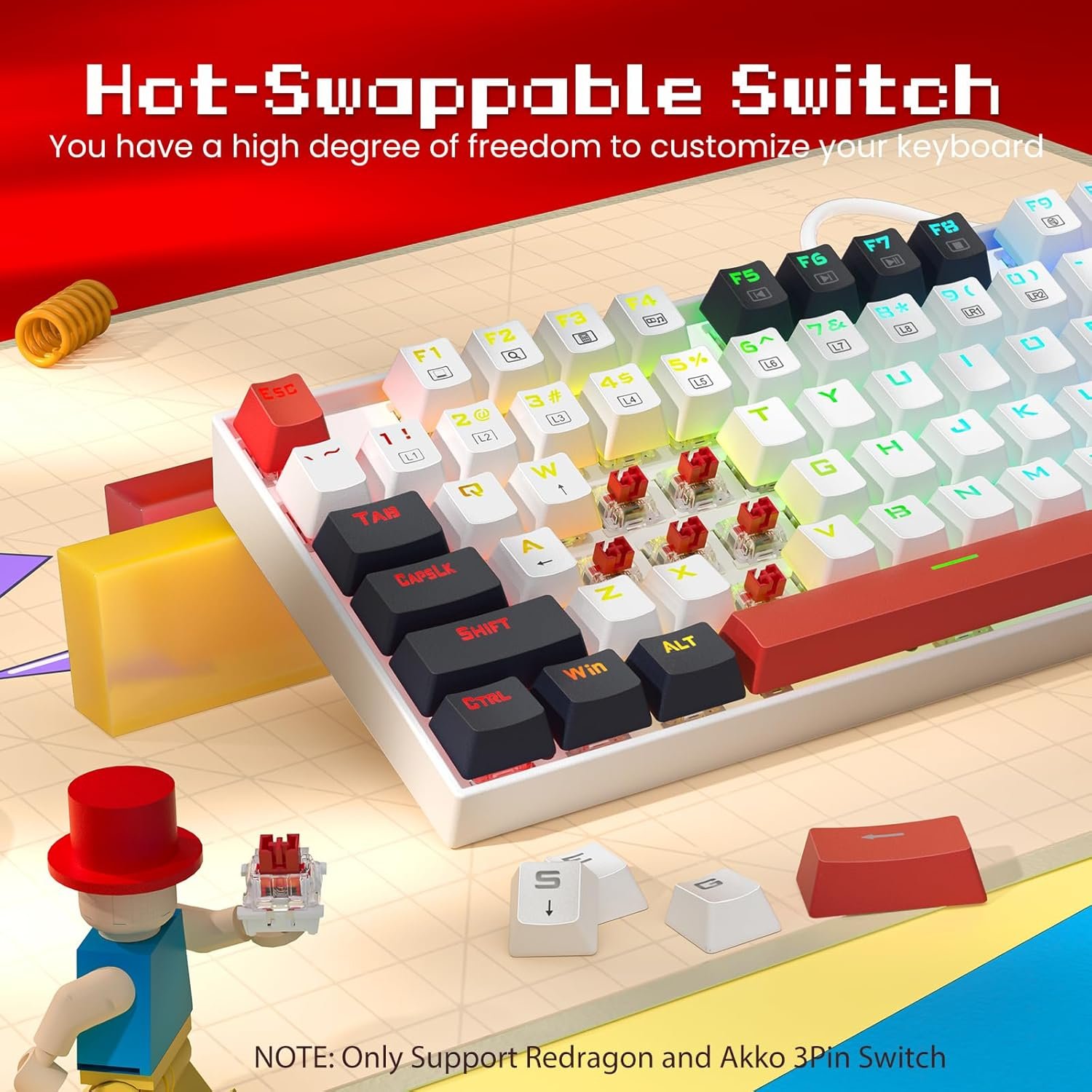 - Switch Type: Hot‑swappable Red mechanical switches (3‑pin compatible).