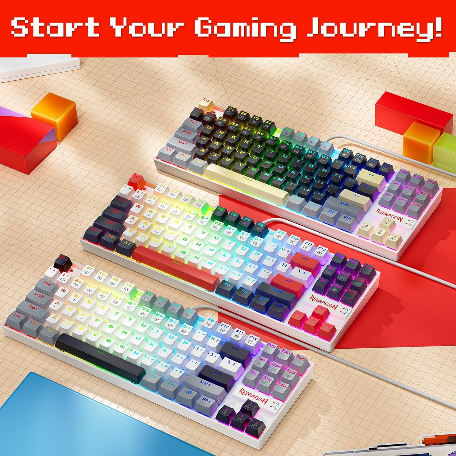 The Redragon Mechanical Gaming Keyboard combines precision, speed, and durability in a compact TenKeyLess design. Featuring vibrant RGB backlighting with multiple customizable effects, it lets you personalize your gaming setup with stunning visual flair. The hot-swappable mechanical switches allow effortless customization without soldering, giving you full control over your typing and gaming experience. Built with a sturdy metal frame and double-shot keycaps, this keyboard ensures long-lasting performance and comfort for intense gaming sessions or everyday work. With full anti-ghosting, programmable macros, and plug-and-play compatibility, the Redragon Mechanical Keyboard delivers professional-grade reliability and responsiveness at an unbeatable value — perfect for gamers, streamers, and creators who demand both performance and style.