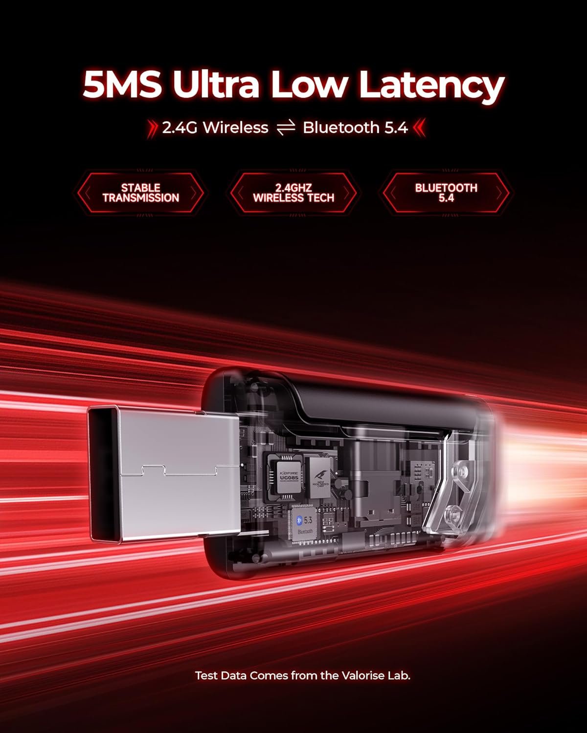 - Ultra-Low Latency ≤ 5 ms (2.4 GHz mode)